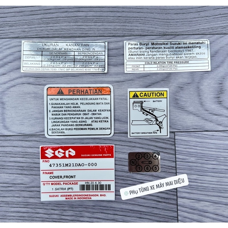 👉 Bộ tem thông số SATRIA 1 bộ 6 miếng như hình.